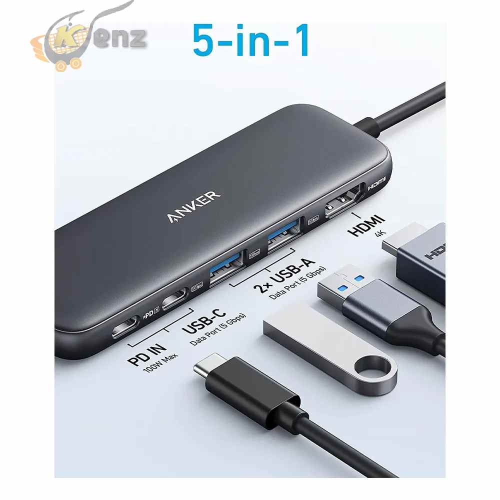Anker USB C Hub ، 332 USB-C Hub (5 في 1) مع شاشة عرض HDMI بدقة 4K ، ومنفذ بيانات USB-C بسرعة 5 جيجابت في الثانية ومنفذ بيانات USB-A بسرعة 5 جيجابت في الثانية ولأجهزة MacBook Pro و MacBook Air و Dell XPS و Lenovo Thinkpad ، أجهزة كمبيوتر محمولة من HP والمزيد