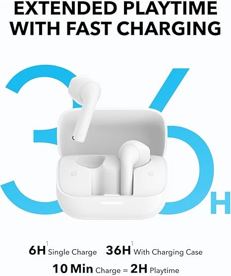 • مدة تشغيل ممتدة: تمتع بمدة تصل إلى 36 ساعة من الموسيقى مع سماعات ساوند كور K20i. تتميز بشحن سريع لمدة 10 دقائق مما يمنحك ساعتين إضافيتين من التشغيل، حتى تكون دائمًا على استعداد للغوص في الصوت في أي زمان ومكان.