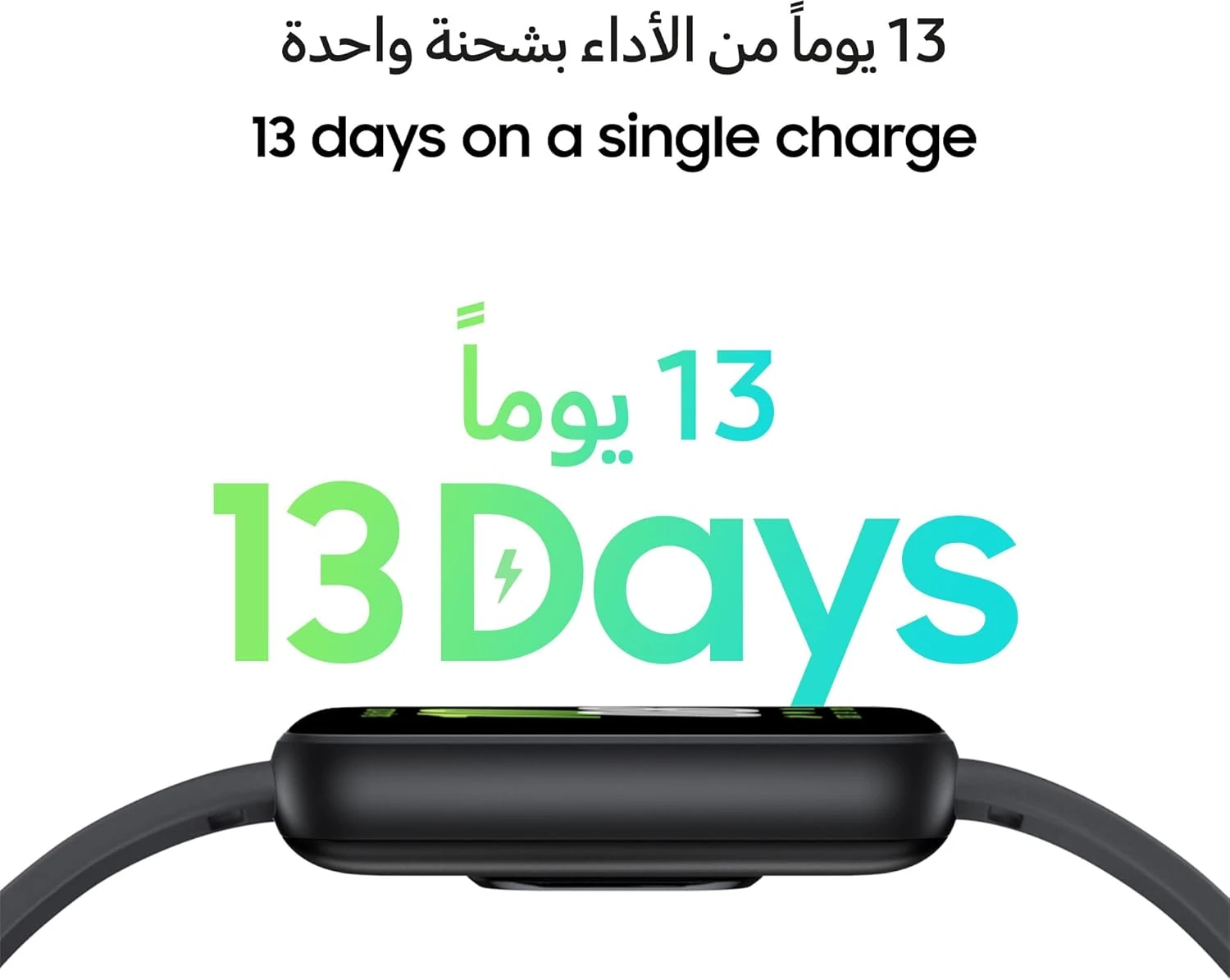 • اشحن ما يصل إلى 13 يومًا من الطاقة بشحنة واحدة، أو قم بتعبئته بسرعة تصل إلى 65% في 30 دقيقة فقط. لا تقلق بشأن عمر البطارية وركز أكثر على لياقتك اليومية.