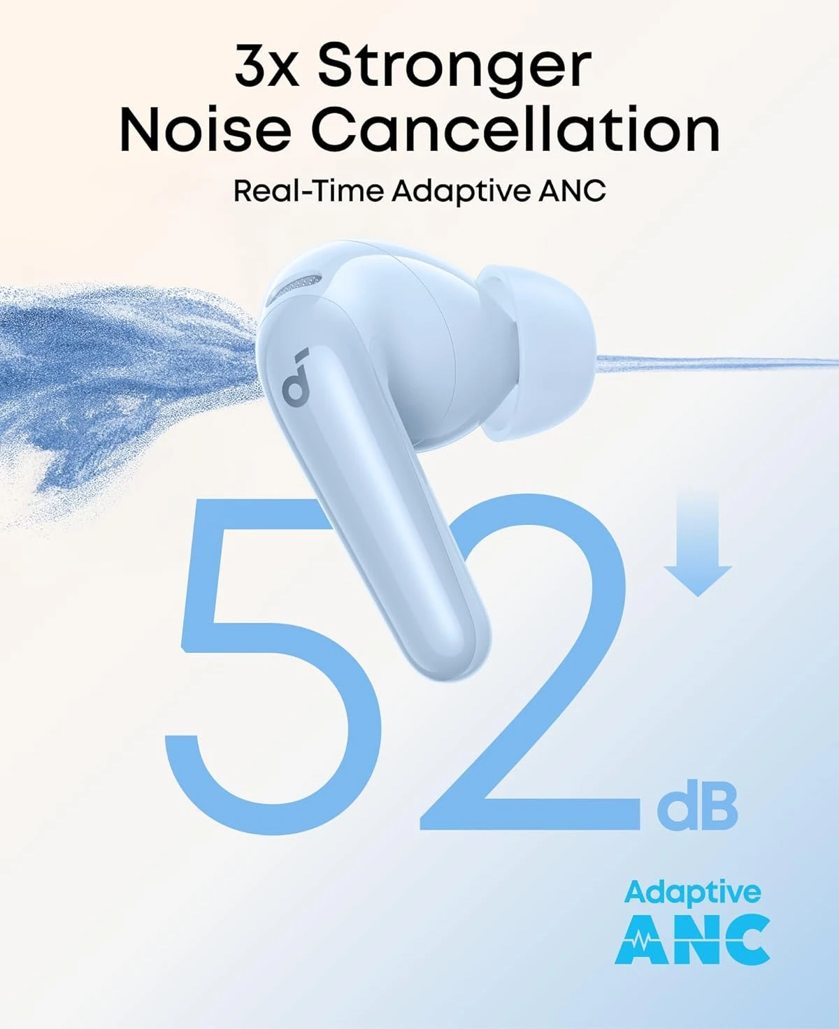 - خاصية إلغاء الضوضاء التكيفية في الوقت الفعلي: تقلل خاصية إلغاء الضوضاء النشطة المتقدمة من الضوضاء حتى 52 ديسيبل. تكتشف التقنية التكيفية محيطك وتختار تلقائيًا أفضل مستوى لإلغاء الضوضاء لك.