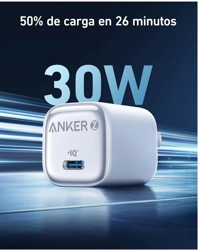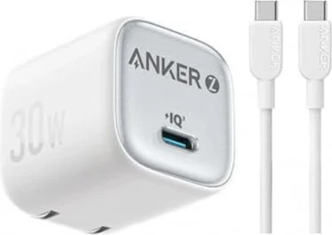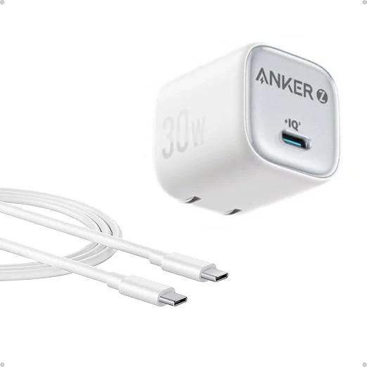 شاحن أنكر Zolo IQ مضغوط – منفذ USB-C بقوة 30 واط مع كابل Type-C إلى Type-C
