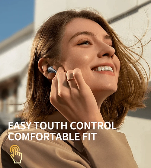 تحكم باللمس: تتيح السماعات التحكم باللمس بسهولة لتشغيل الموسيقى، تغيير الأغاني، الرد على المكالمات، أو تفعيل المساعد الصوتي.