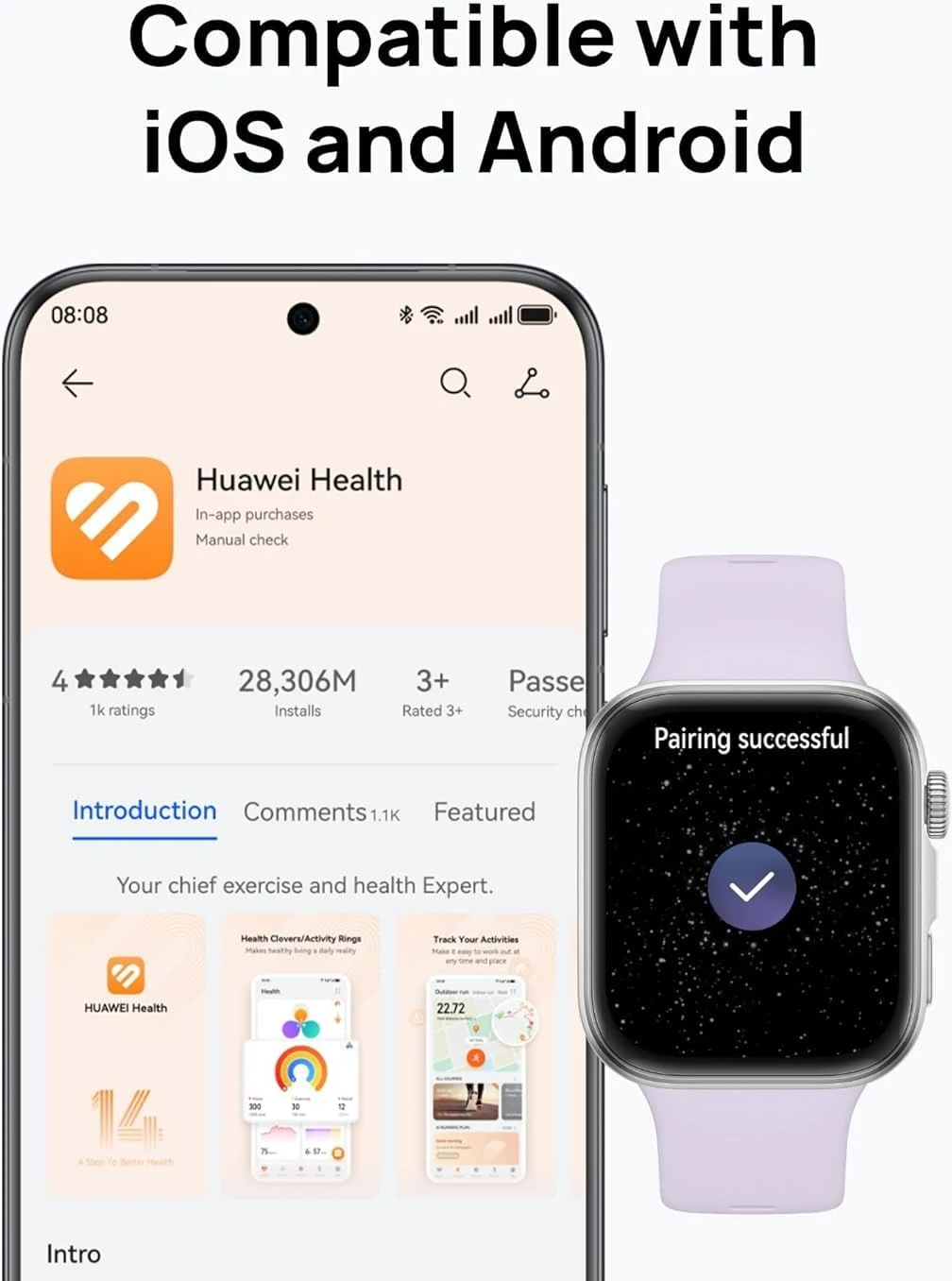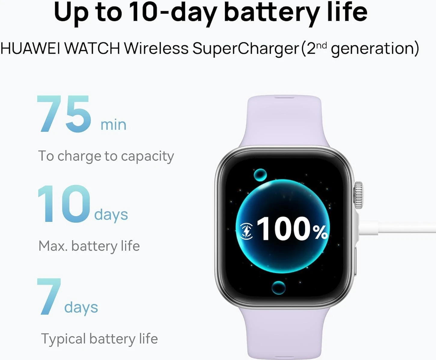 هواوي ساعة فيت 4 هي ساعة ذكية فاخرة مربعة الشكل مع مقاومة للماء حتى 5 ايه تي ام، وشاشة لمس ملونة، وتاج دوار، وأزرار تحكم جانبية. توفر مجموعة شاملة من ميزات الصحة واللياقة البدنية ونمط الحياة، ويمكن إقرانها مع مجموعة متنوعة من الأحزمة، مما يجعل الساعة مناسبة للارتداء اليومي المريح وأكثر من 100 وضع للتمرين.