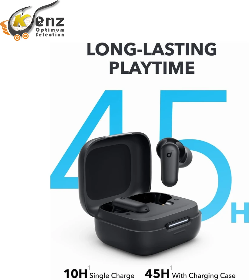 The Soundcore R50i NC provides up to 45 hours of total playtime with the included charging case, keeping your music playing all day and night. With hours of battery life on a single charge, these earbuds are perfect for long commutes, workdays, and more.