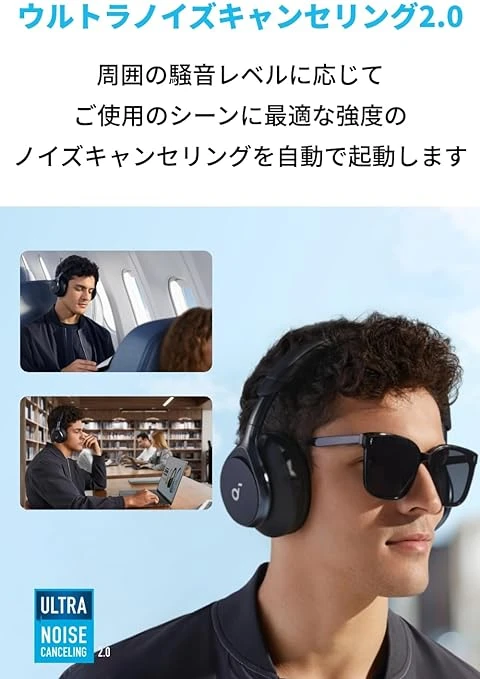 2X Stronger Voice Reduction: Stay focused during bustling journeys with our upgraded noise cancelling structure. Space One wireless headphones excel at blocking out mid to high-frequency sounds with 2X more* voice reduction. *Compared with soundcore Q30 headphones. Reduce Noise By Up to 98%*: Adaptive noise cancelling detects external sounds and sound leakage, auto-calibrating to deliver optimal noise reduction. Escape unwanted distractions, whether you’re on a noisy train, in a bustling café, or your Bluetooth headphones aren’t sitting on your ears properly. *Tested by soundcore under laboratory conditions. Journey with Hi-Res Audio: Space One’s 40mm customized dynamic drivers support LDAC for Hi-Res Wireless audio, delivering 3X more detail than standard Bluetooth codecs for detail-rich listening without any tangled wires. 40 Hours of ANC Playtime: Embark on blissful journeys with 40 hours of playtime with ANC on. 55 hours of continuous music with ANC off ensures endless entertainment without battery concerns. Crafted for Comfort and Style: Elegantly designed, 8° rotating ear cups effortlessly conform to the contours of any head, and a soft integrated headband evenly distributes pressure for natural prolonged wear.