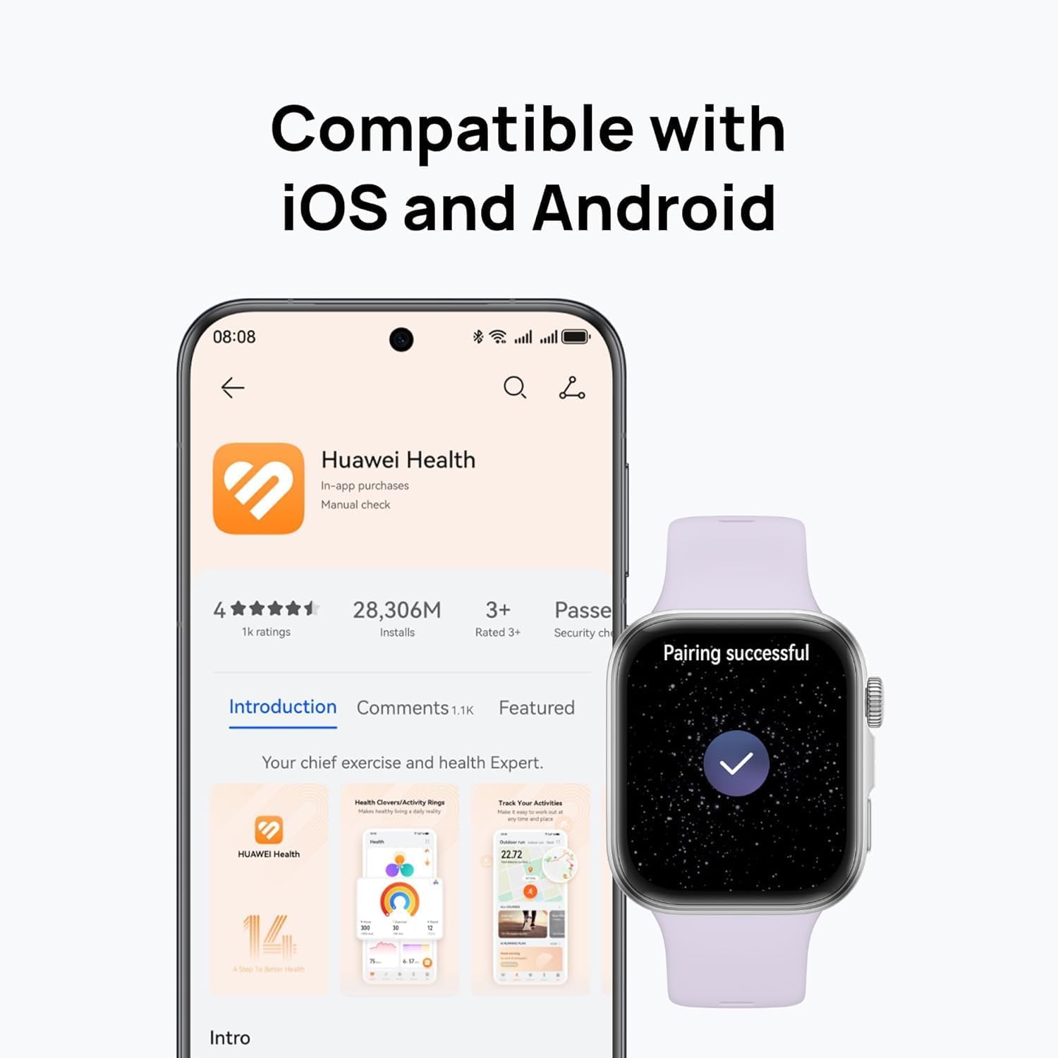 HUAWEI WATCH FIT 4 is a premium square-shaped smart watch with 5 ATM water resistance, a color touchscreen, a rotating crown, and side button controls. It offers a comprehensive suite of health, fitness, and lifestyle features, and can be paired with a diverse range of straps, making the watch suitable for everyday comfortable wear and 100+ workout mode