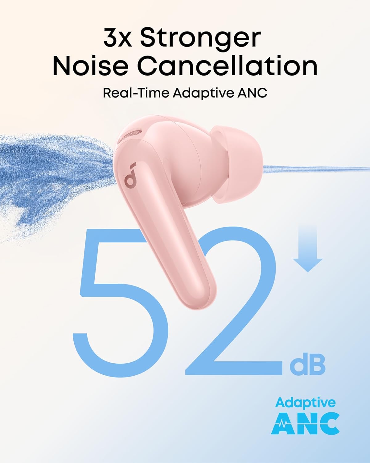 - Real-Time Adaptive Noise Cancelling:Advanced ANC reduces noise by up to 52 dB. Adaptive technology detects your surroundings and automatically chooses the best noise-cancelling level for you.